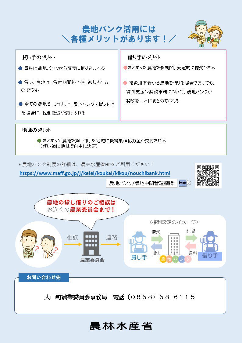 (書類受付や相談などは引き続き大山町農業委員会事務局で行います。)