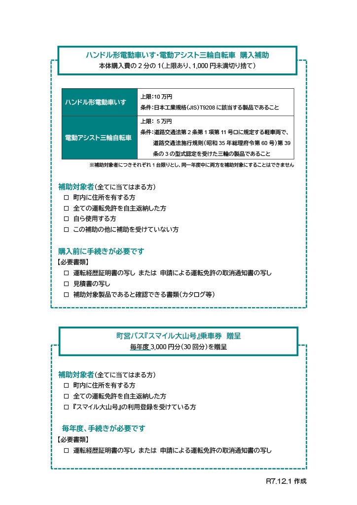 町営デマンドバス「スマイル大山号」の回数券3,000円分を毎年度交付