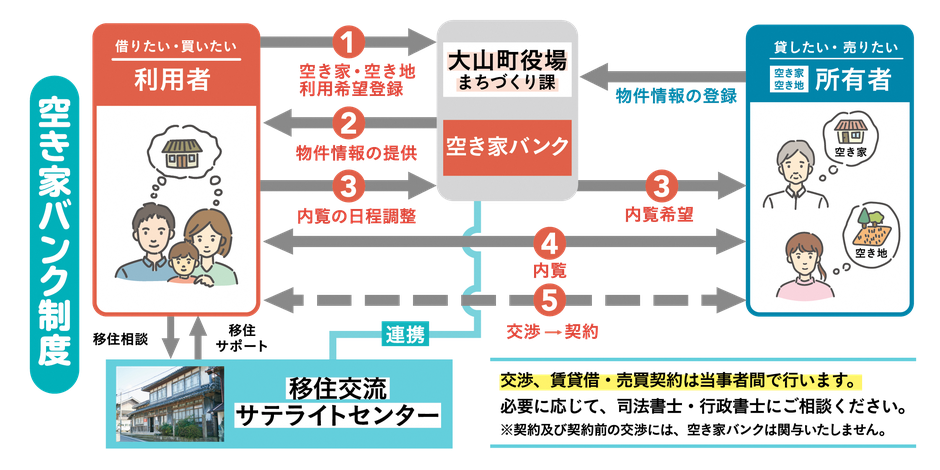 所有している空き家を活用したい所有者と大山町で空き家物件を利用したい方を紹介する制度です。