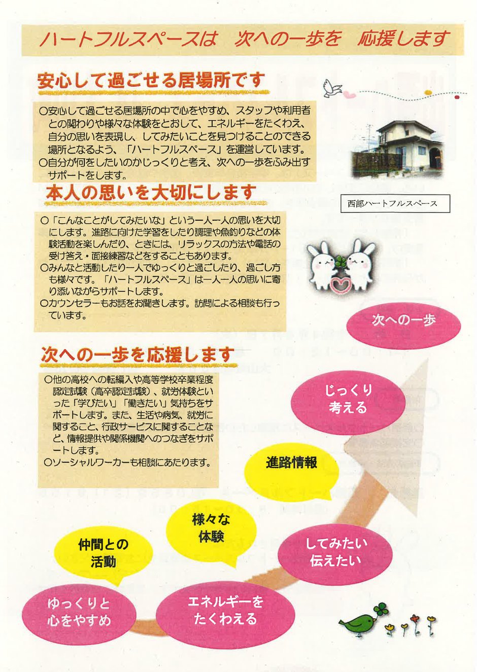 20歳くらいまでの青少年を学校復帰や社会参加・自立に向けて支援する