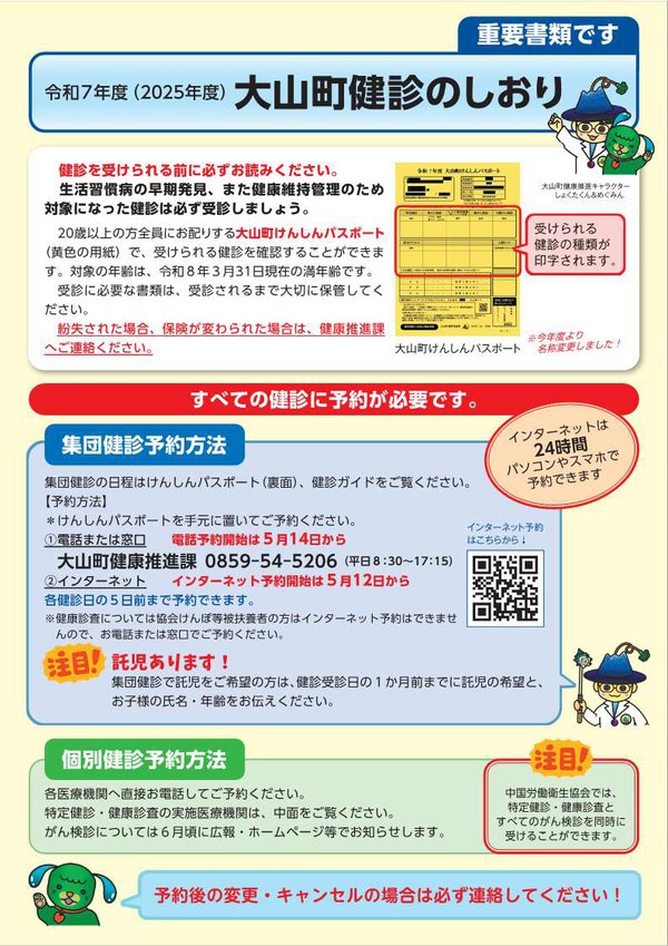 大山町健康推進課 0859-54-5206(平日8時30分~17時15分)